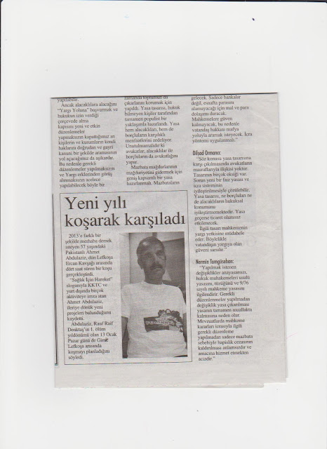 THE LATEST NEWS IN THE KIBRIS NEWSPAPER ABOUT MY 30 KM RUN/WALK TO MARK THE BEGINNING OF THE YEAR 2013